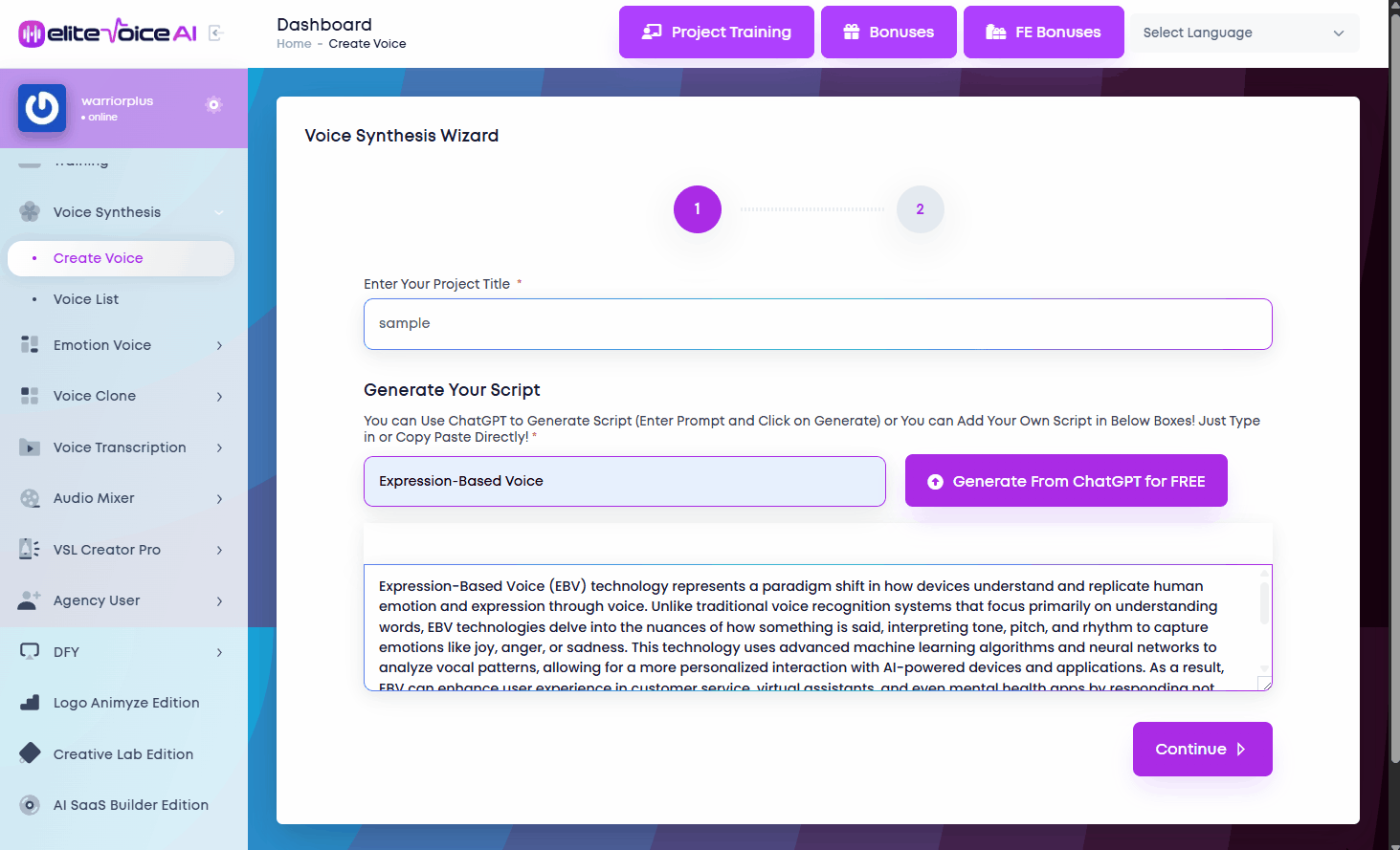 Perfect Companion to Elite Voice AI - Generate the script, plug it into Elite Voice AI, and instantly convert it into a pro-quality voiceover video.